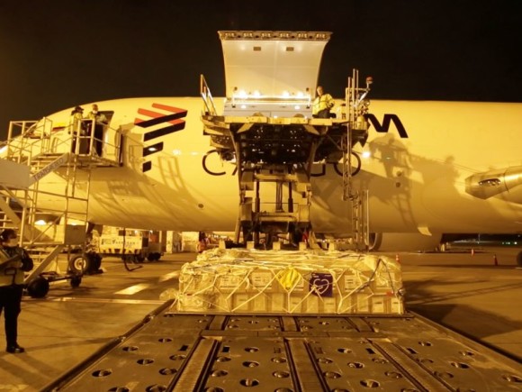 A Boeing 767-300F was used on this occasion; under normal circumstances, this aircraft is utilized for international operation, allowing transportation of 55 tons of food in one single trip.